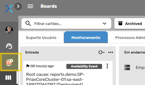 Para criar uma equipe no Priax ITOM, você pode utilizar o botão "Add" no canto superior direito dos Boards, na tela principal.